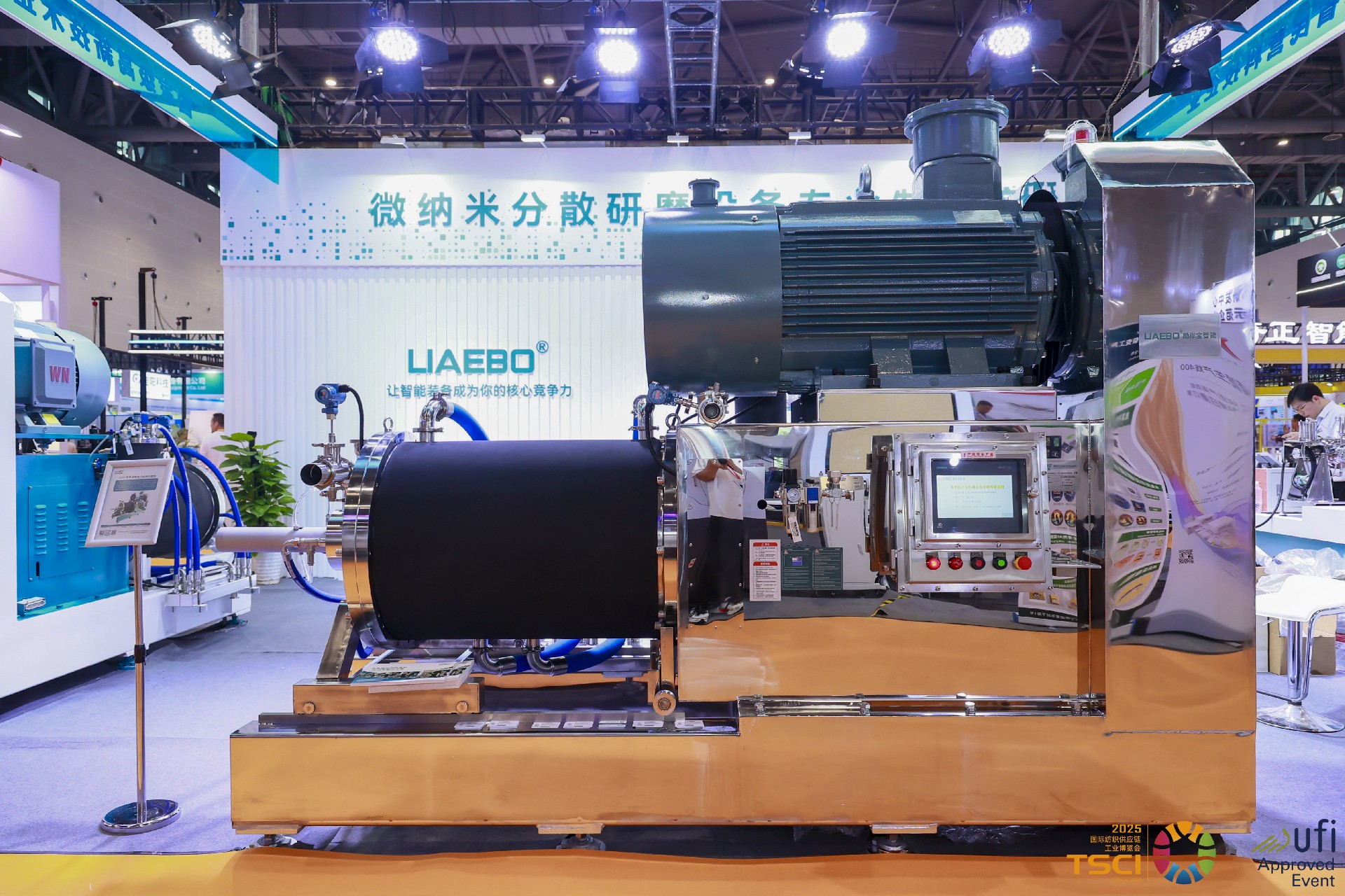 展會期間,勵岸寶科技在4號館A15展位展示了砂磨機在紡織染料、功能性顏料等領(lǐng)域的實際應(yīng)用案例,并通過現(xiàn)場演示與技術(shù)講解,向客戶傳遞“高效、環(huán)保、智能”的產(chǎn)品理念。公司團隊與參會嘉賓深入探討行業(yè)趨勢,共謀合作新機遇。