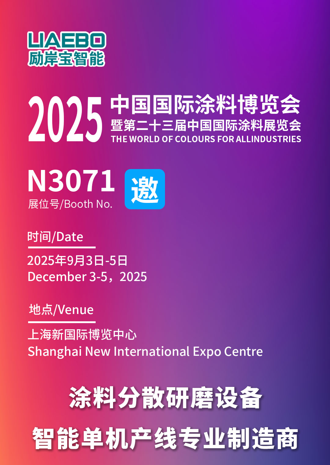 邀請(qǐng)函 | 勵(lì)岸寶智能誠(chéng)邀您蒞臨參觀(guān)2025中國(guó)國(guó)際涂料博覽會(huì)