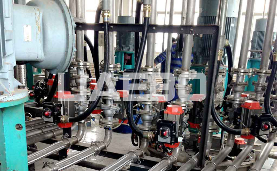 改自動化生產(chǎn)線結(jié)構(gòu)合理,工藝布局高端,是凹版油墨行業(yè)自動化生產(chǎn)線經(jīng)典代表案例,既滿足了提高生產(chǎn)效率,降低產(chǎn)品成本的需求,又解決了油墨行業(yè)品種繁多、批量微小的特殊???,從化油(樹脂溶解)、預(yù)混(固液混合制漿)、研磨(串聯(lián),滿足細(xì)度要求)、調(diào)墨(成品調(diào)配)各個(gè)工藝細(xì)節(jié)都考慮的及其完善,使用方便,沒有資源浪費(fèi)、產(chǎn)線不適用的因素,深得客戶贊賞。