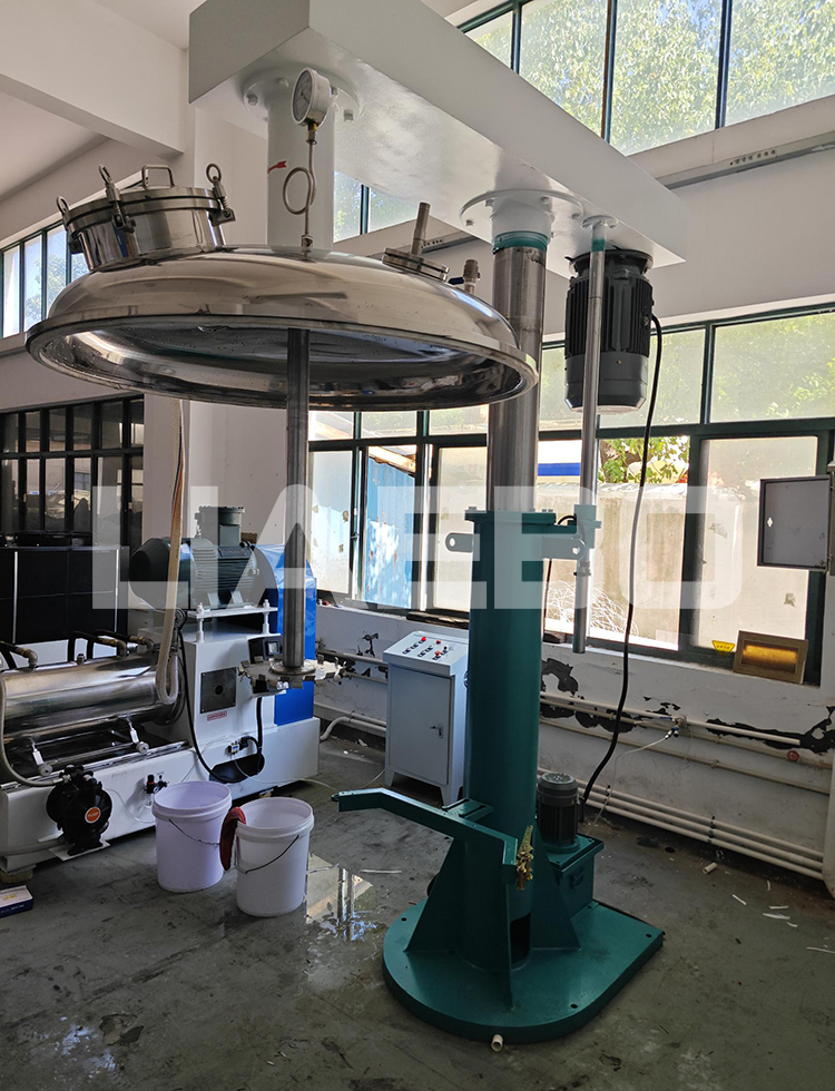 上海某生物科技有限公司50L砂磨機(jī)、0.5L實(shí)驗(yàn)室砂磨機(jī)、22KW液壓升降分散機(jī)調(diào)試成功