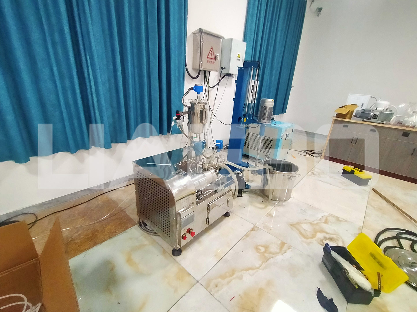 浙江某新材料公司1L實(shí)驗(yàn)室砂磨機(jī)調(diào)試成功