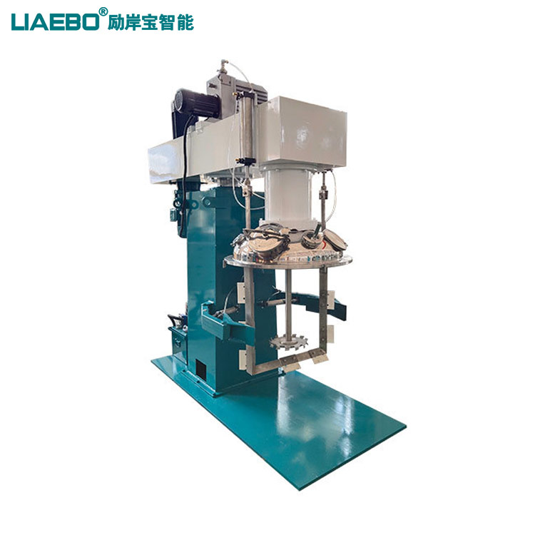 液壓升降同心雙軸攪拌機(jī)集高速分散和低速強(qiáng)力攪拌于一體,對中高粘度及觸變性物料具有很好的適應(yīng)性。多種攪拌方式可選,分散、攪拌可同時(shí)進(jìn)行,能獲得理想效果。該機(jī)適用于各種物料的攪拌、混合和分散溶解。操作簡單,適應(yīng)性強(qiáng),是理想的攪拌、分散等多功能設(shè)備。可根據(jù)客戶的物料的特性和生產(chǎn)工藝要求制定合理配置。刮壁式錨式攪拌器在動力機(jī)構(gòu)的驅(qū)動下進(jìn)行旋轉(zhuǎn),在旋轉(zhuǎn)過程中,驅(qū)使物料做軸向旋轉(zhuǎn)和徑向旋轉(zhuǎn),使之?dāng)嚢杌旌暇鶆?,同時(shí)在攪拌器的四周帶有四氟刮壁材料,對桶體內(nèi)壁及桶底進(jìn)行刮拭,無殘留刮壁;高速分散盤在高速狀態(tài)下,具有很高的剪切力,短時(shí)間內(nèi)將物料分散均勻。通過控制油泵工作帶動液壓機(jī)架升降,液壓機(jī)架帶動整個(gè)傳動機(jī)構(gòu)和工作組升降。