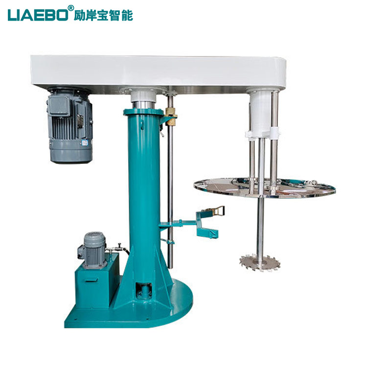 分散機通過油缸作為升降執(zhí)行器,帶控制閥控制分散機上升、停止、下降,操作簡單,穩(wěn)定性高;分散盤采用六角螺栓夾盤與主軸固定,能夠方便快速拆卸更換,清洗容易。