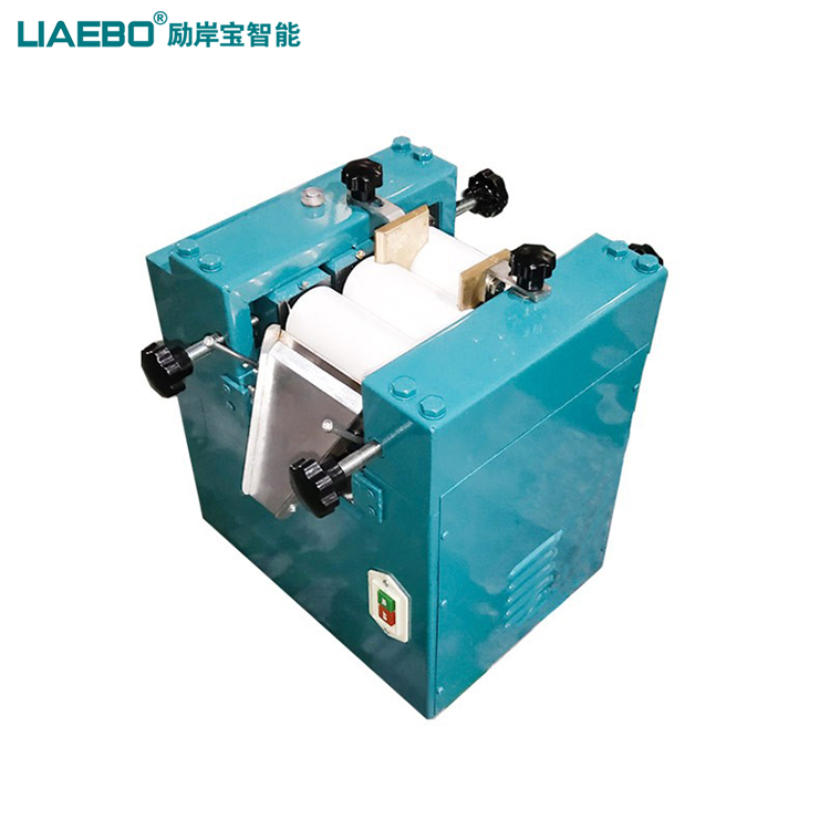小型三輥研磨機適用于需要分散而細度要求較高的膏體或高粘度物料使用;通過水平的三根輥筒的表面相互擠壓,手搖式調(diào)節(jié)輥筒之間的間距,以不同速度的摩擦達到研磨效果。裝有緊急制動按鈕,防止落入異物導(dǎo)致的設(shè)備損壞。輥子使用特殊硬質(zhì)合金澆鑄而成,也可以使用純氧化鋯材質(zhì)。小型三輥研磨機由三個輥筒組成,裝在一個機架上,由電動機直接帶動。一般輥筒間的轉(zhuǎn)動方向不同,前輥向前轉(zhuǎn)動,中輥向后轉(zhuǎn)動。輥子轉(zhuǎn)速前輥快、后輥慢。中間輥固定,前后兩輥裝在滑道上,有彈簧裝置,用手輪調(diào)節(jié)前后輥與中輥的距離。物料由后輥與中輥之間進入,受到輥筒的擠壓,產(chǎn)品顆粒變細,然后由快輥帶出,快輥末端裝有刮刀,使物料與輥筒分離,落入收集桶內(nèi)。